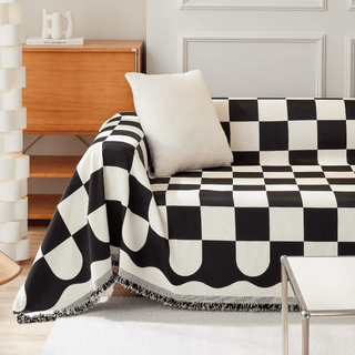 Checkered Onyx Reversible Comfort Sofa / Couch Cover -Final Sale