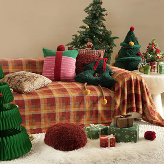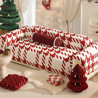 Christmas Classic Plaid Plush Sofa Cover Cozy Festive Holiday Design for Your Living Room