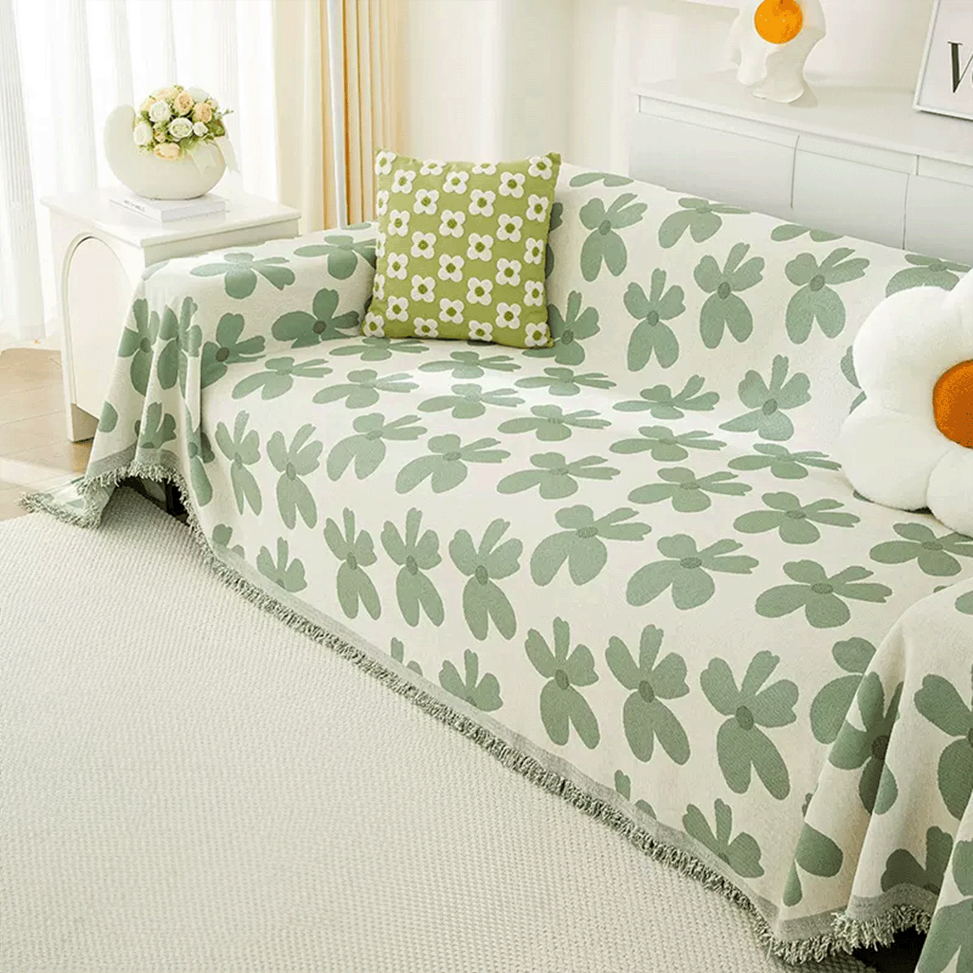 Soft Breathable Herringbone Plush Pet-Friendly Multi-Purpose Minimalist Sofa Cover – Woven Throw Couch Protector