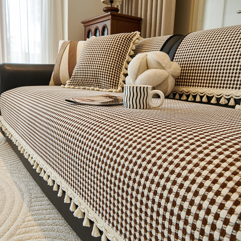 Cozy Gingham Tassel Chenille Nonslip Sofa/Couch Cover