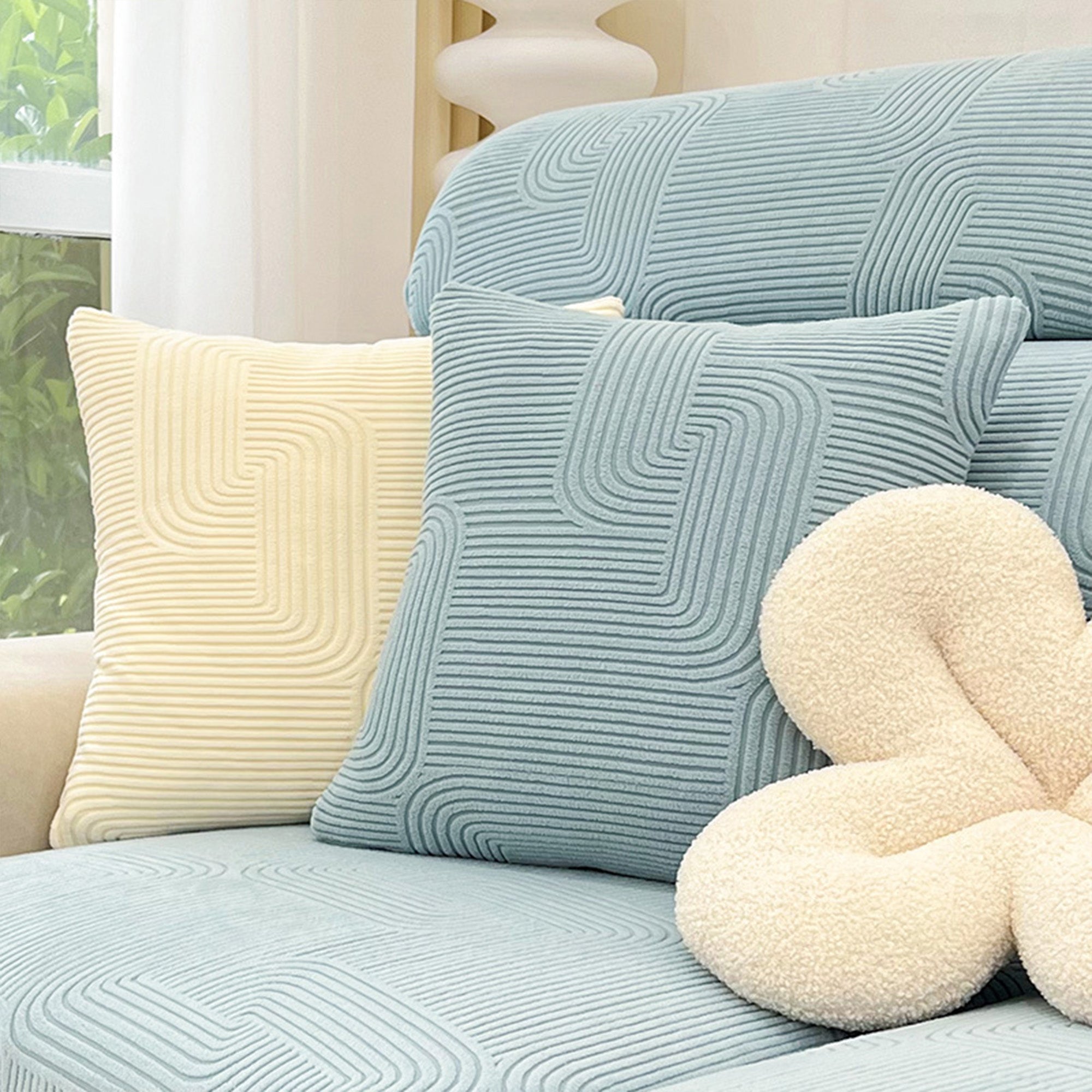 Elegant Linear Jacquard Stretch Sofa Cover – Full Wrap, Anti-Slip Protection