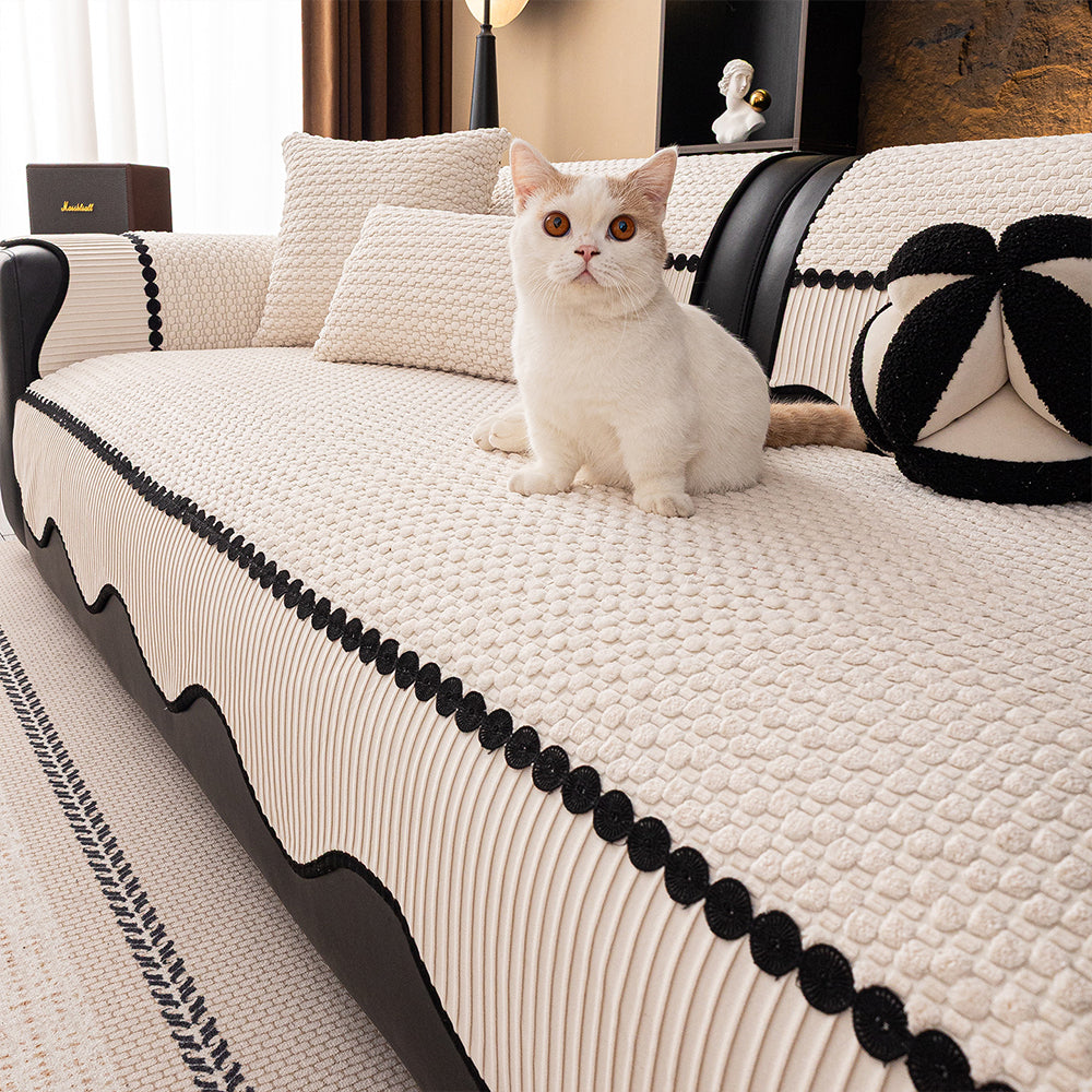 Bring modern texture and warmth to your living room with our Modern Corduroy Wave Nonslip Sofa/Couch Cover. Featuring a luxurious thickened corduroy surface paired with elegant wave-edge detailing, this cover blends contemporary sophistication with cozy comfort. The subtle honeycomb texture adds visual depth, while the rich tones complement any modern or classic décor. Crafted from premium corduroy fabric, it offers a soft yet durable touch — perfect for autumn and winter use. The nonslip backing ensures the cover stays securely in place, making it ideal for homes with kids or pets.