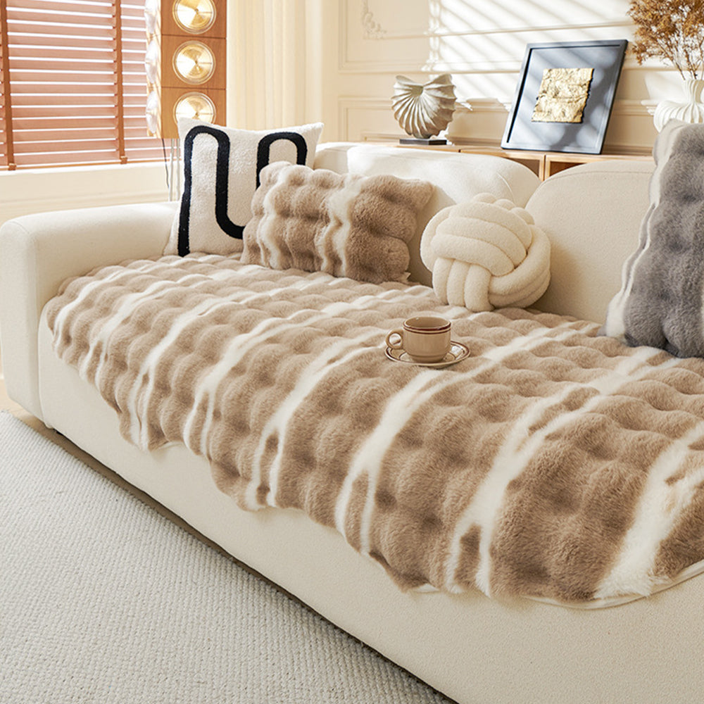 Winter Plush Irregular Faux-Rabbit Nonslip Sofa/Couch Cover