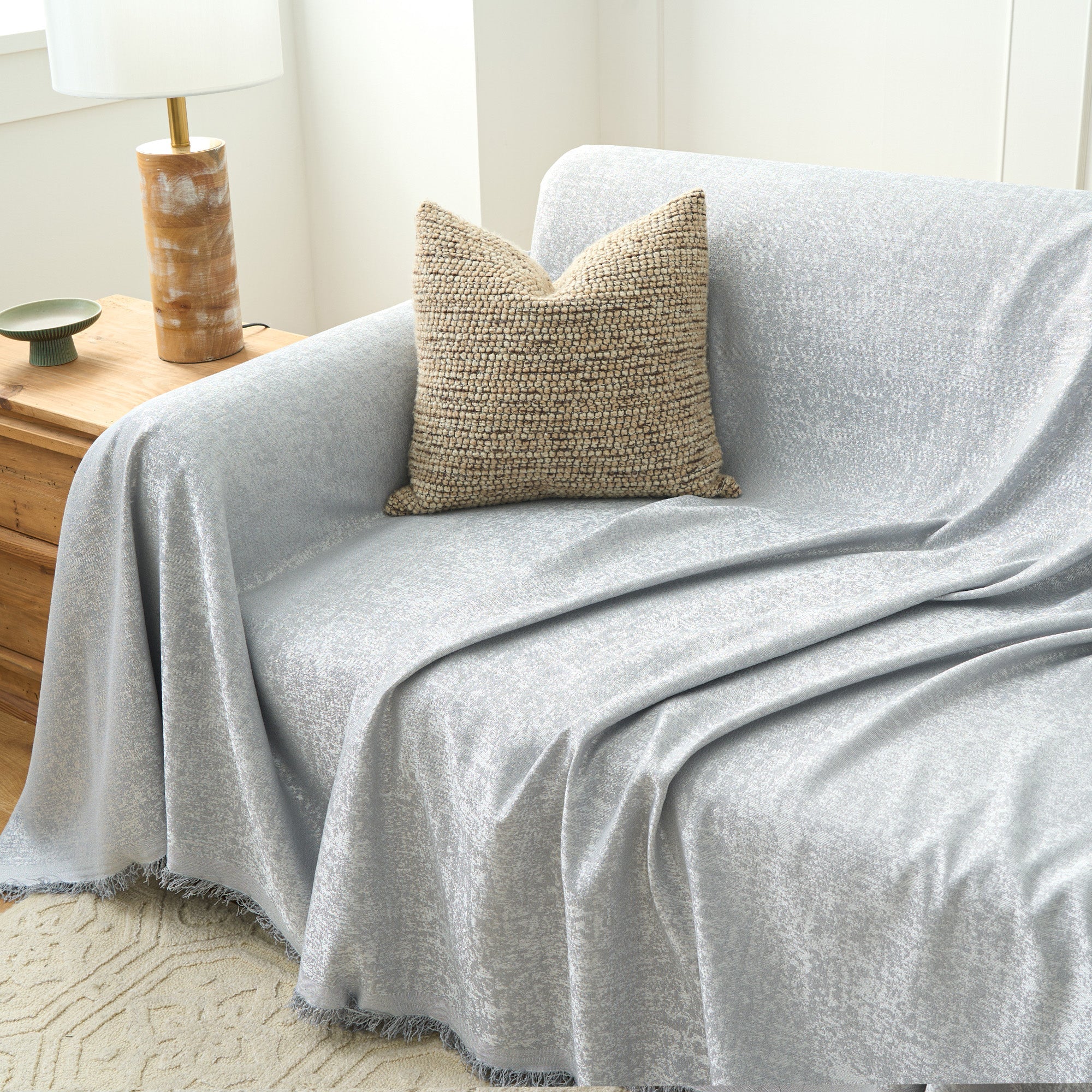 Soft Breathable Herringbone Plush Pet-Friendly Multi-Purpose Minimalist Sofa Cover – Woven Throw Couch Protector