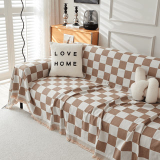 Checkered Onyx Reversible Comfort Sofa / Couch Cover -Final Sale