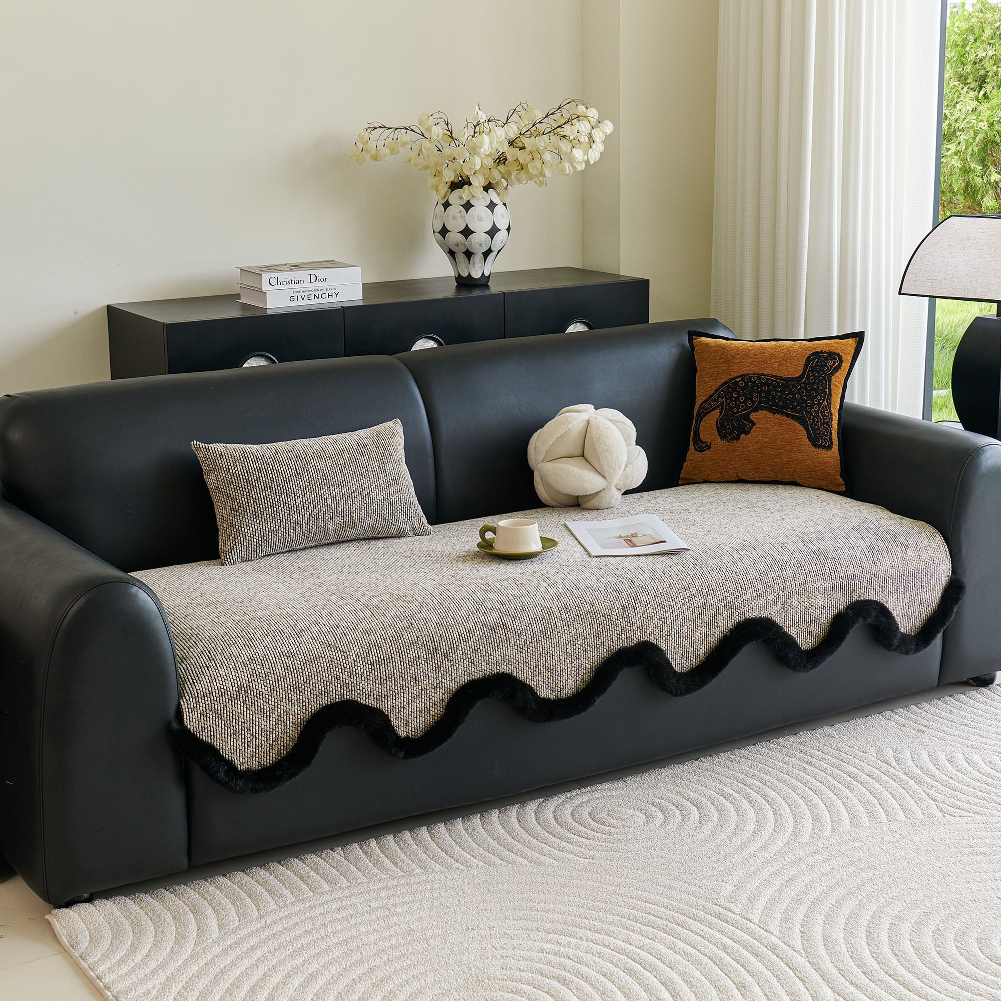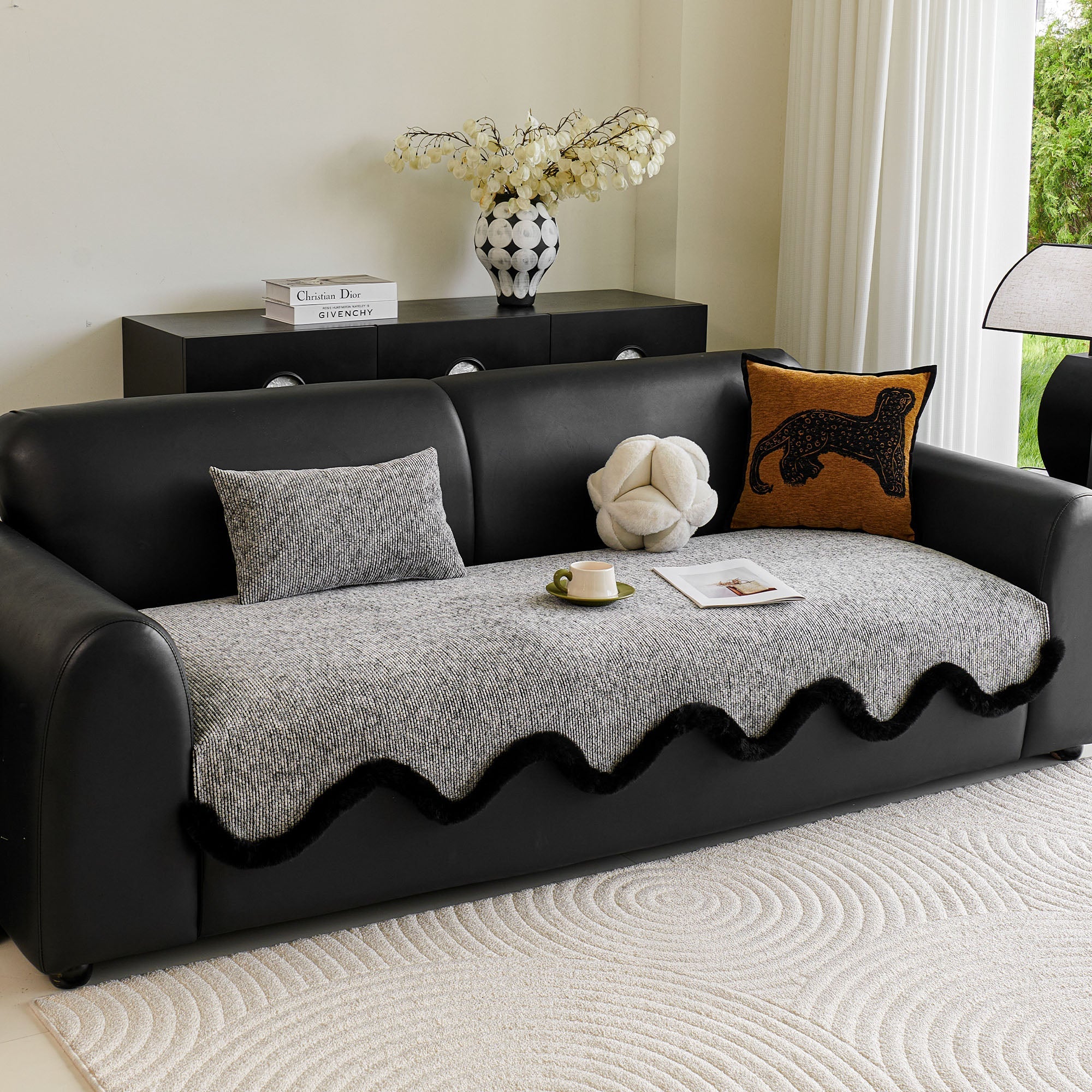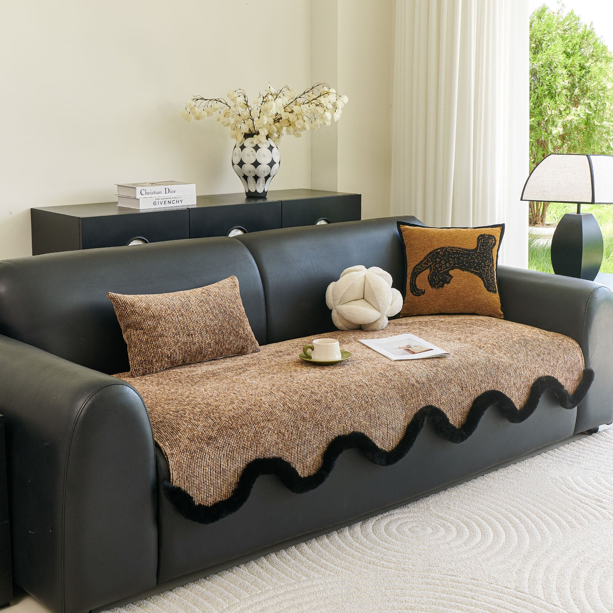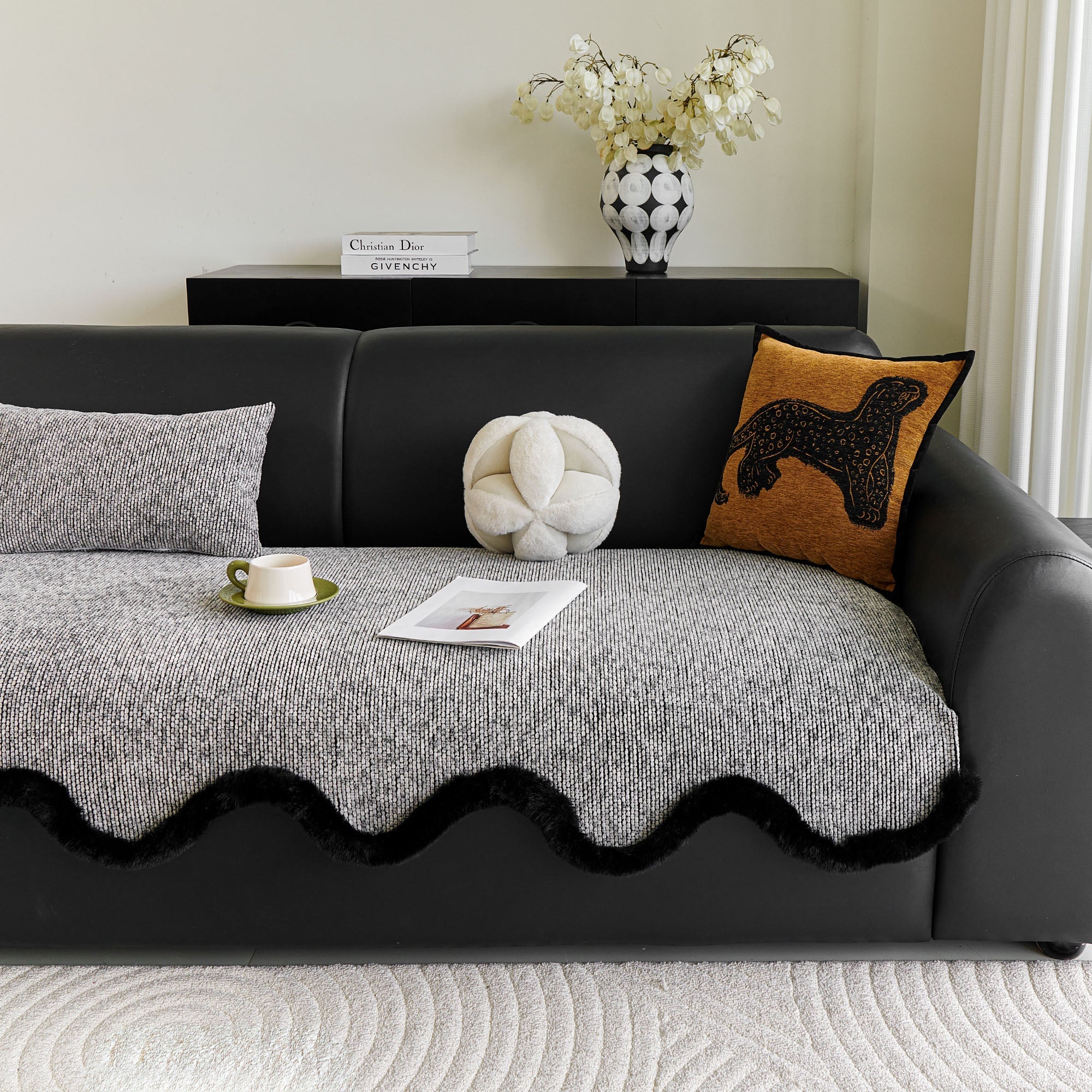 Bring a chic mid-century vibe to your living room with our Mid-Century Wave Chenille Nonslip Sofa/Couch Cover. The tactile, pebble-woven chenille pairs with an eye-catching wavy plush trim for a designer look that elevates leather or fabric sofas in any season. Crafted for everyday living, it cushions, protects, and stays put—so your seating always looks polished.