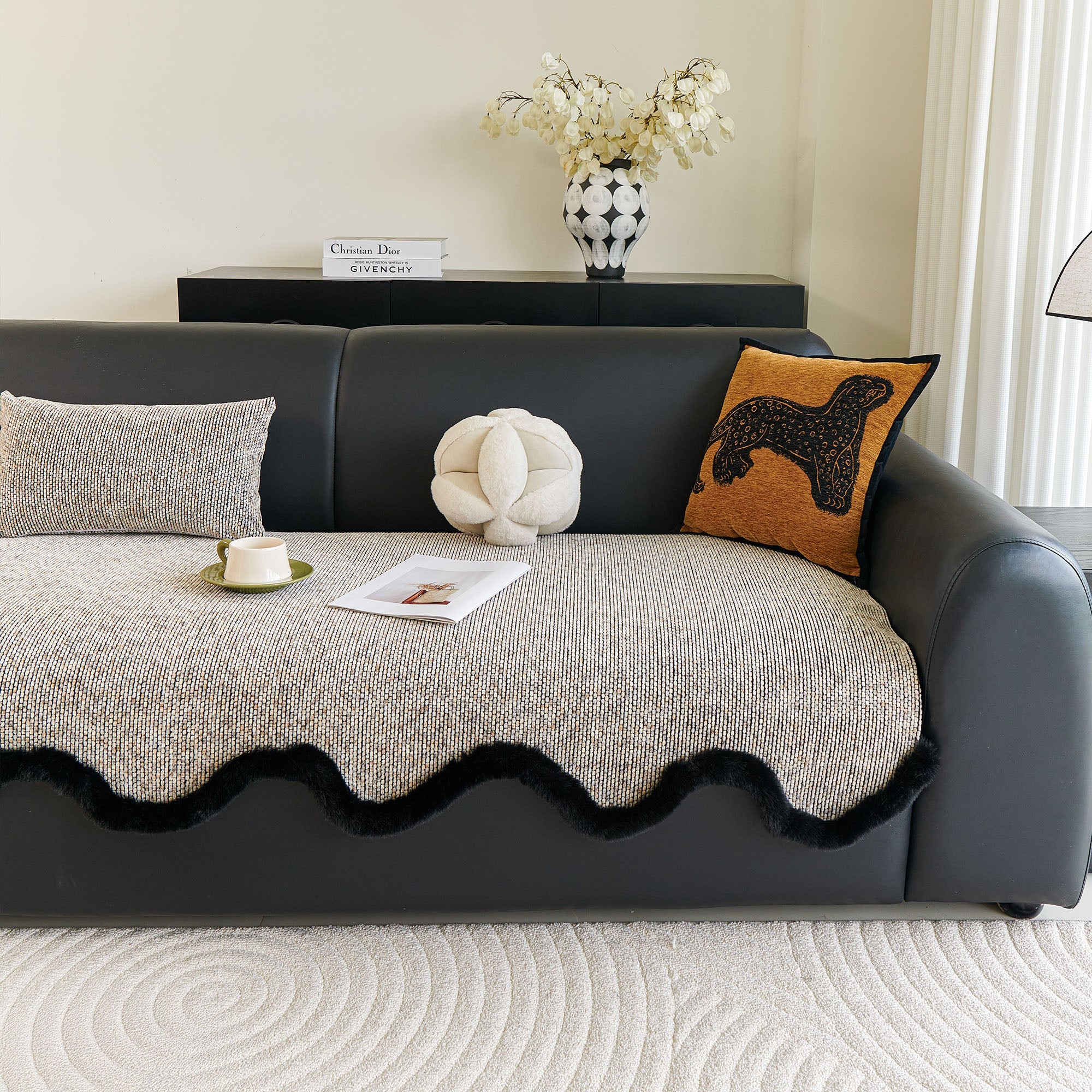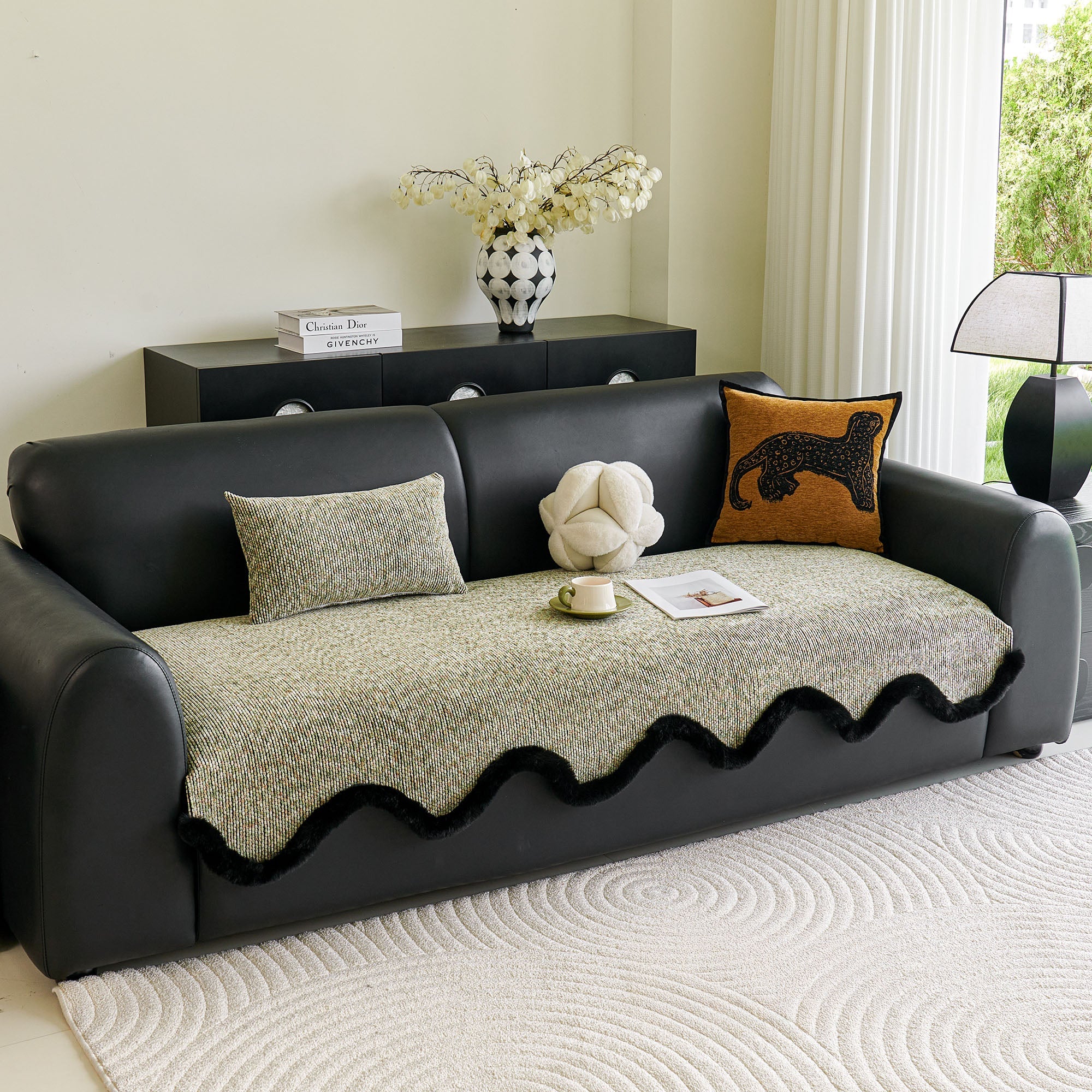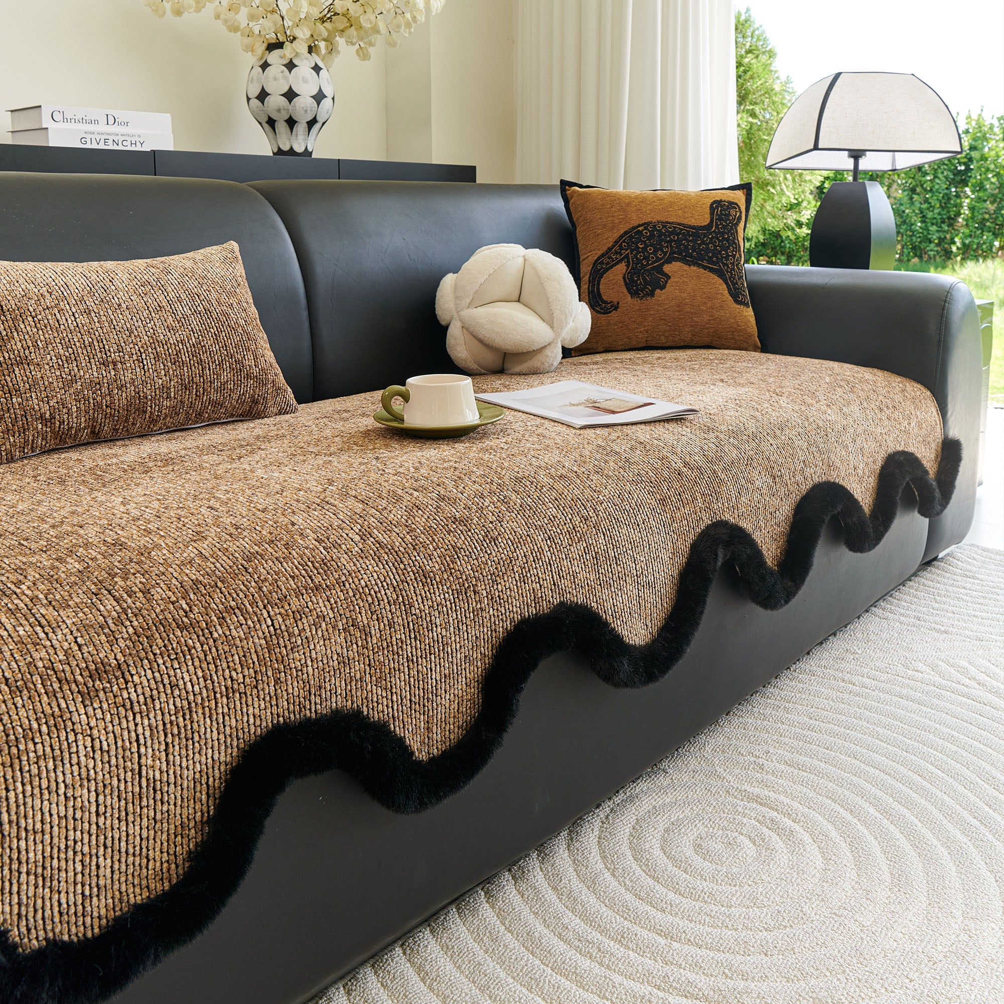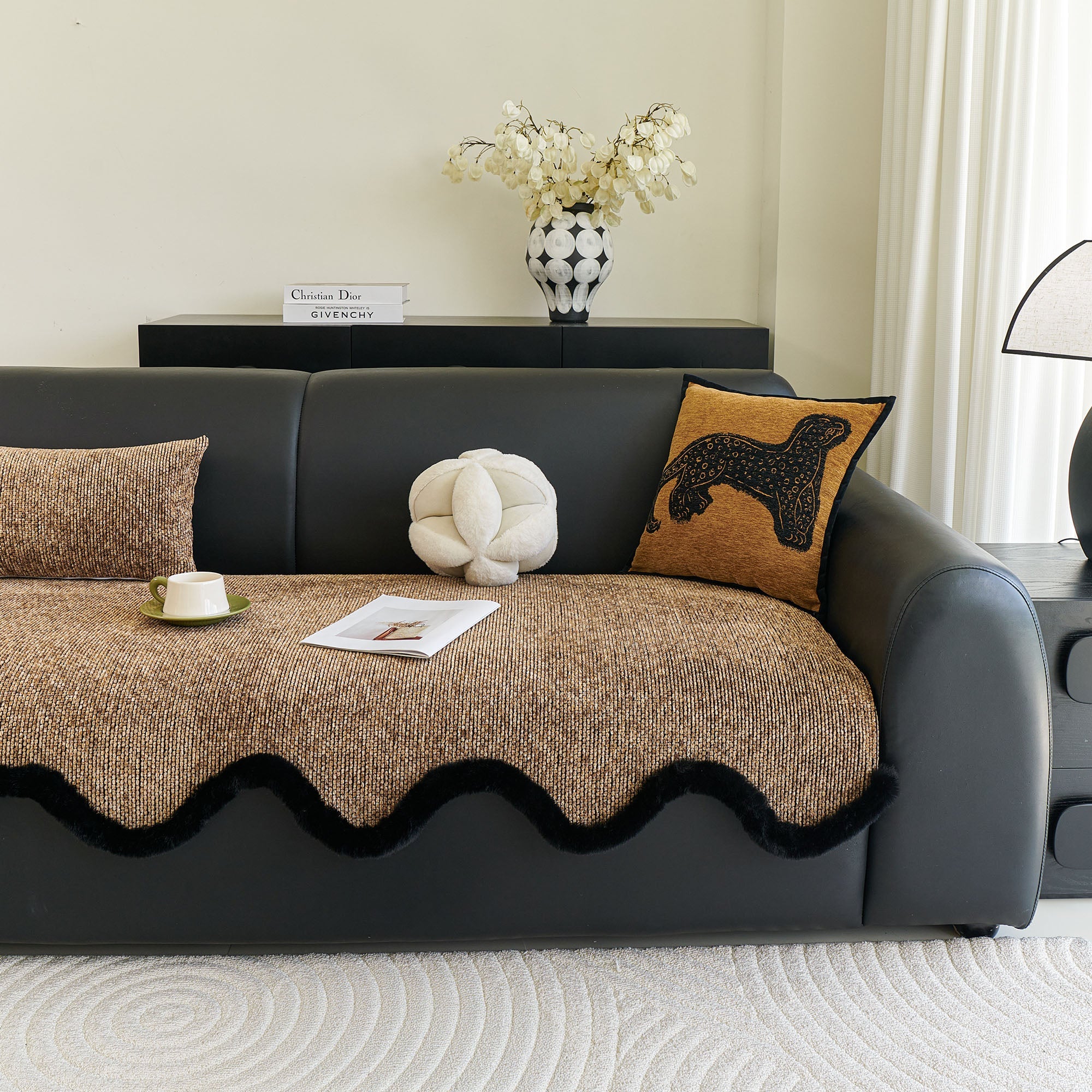 Bring a chic mid-century vibe to your living room with our Mid-Century Wave Chenille Nonslip Sofa/Couch Cover. The tactile, pebble-woven chenille pairs with an eye-catching wavy plush trim for a designer look that elevates leather or fabric sofas in any season. Crafted for everyday living, it cushions, protects, and stays put—so your seating always looks polished.