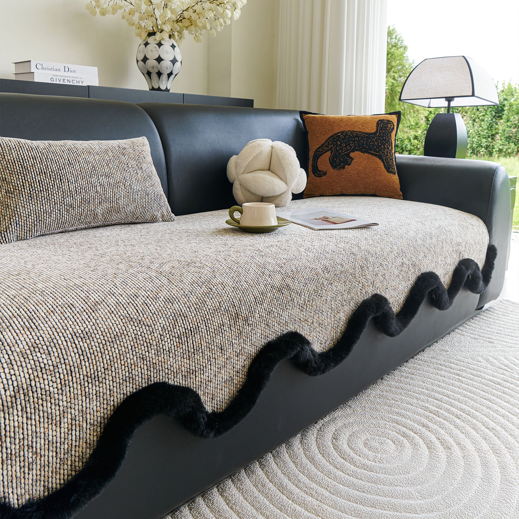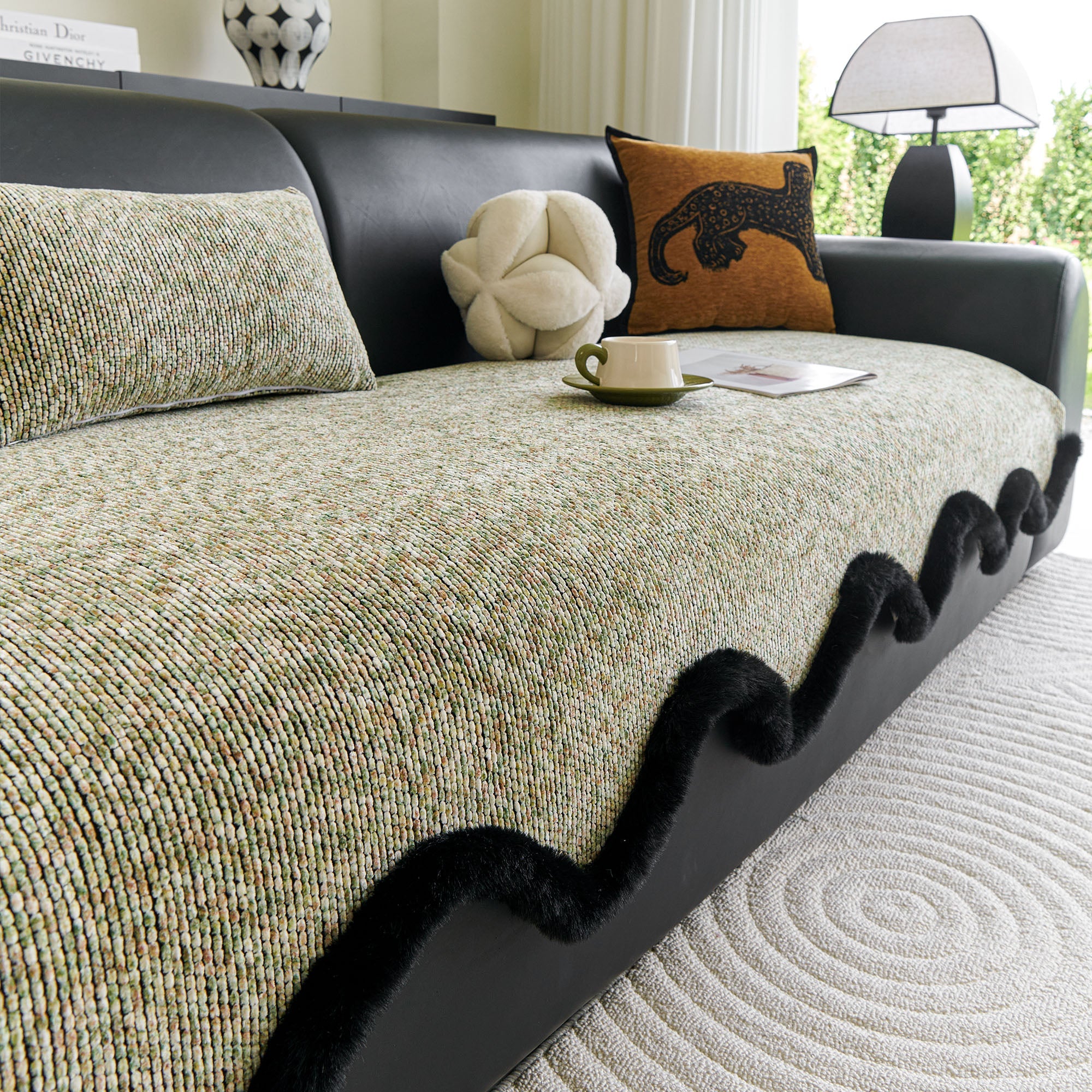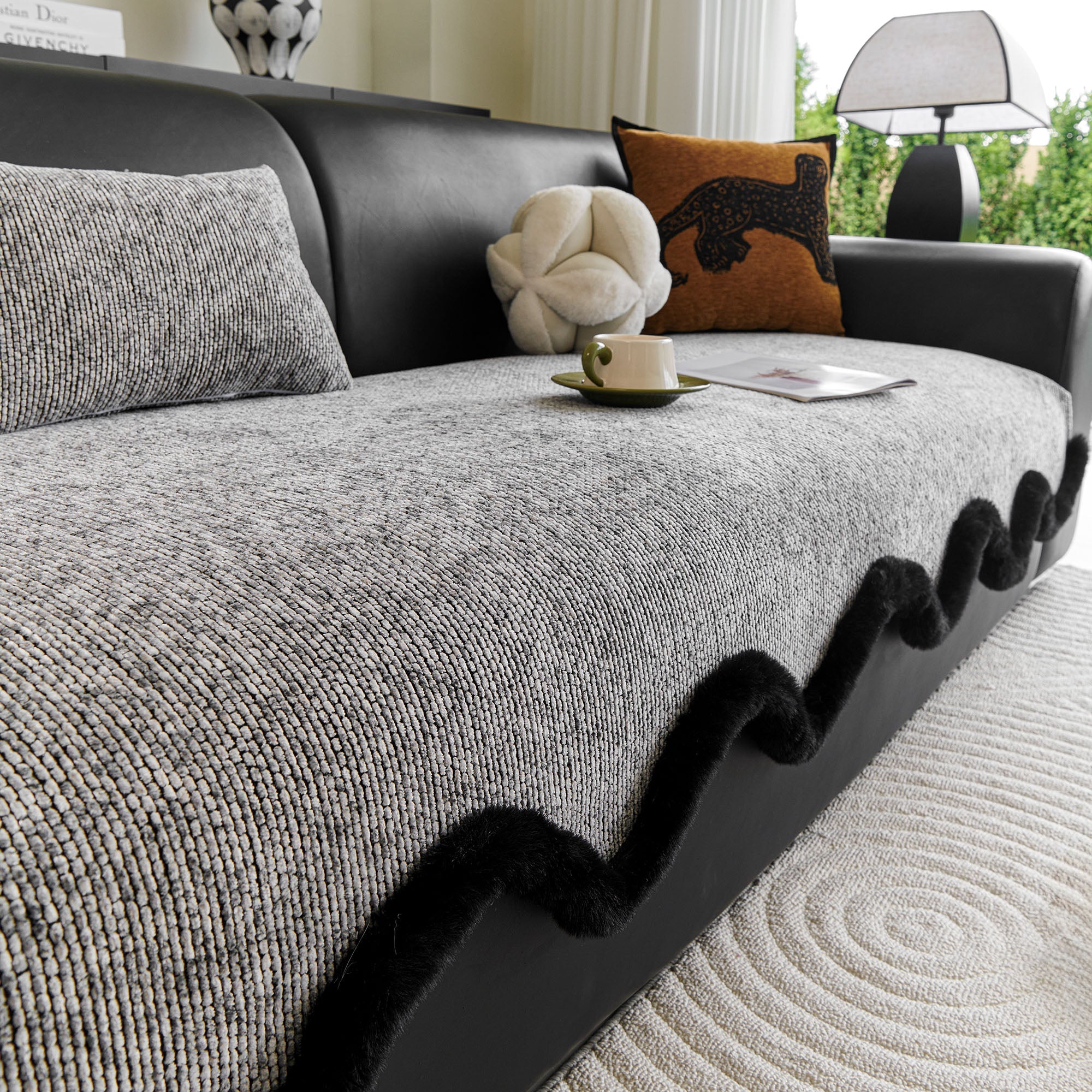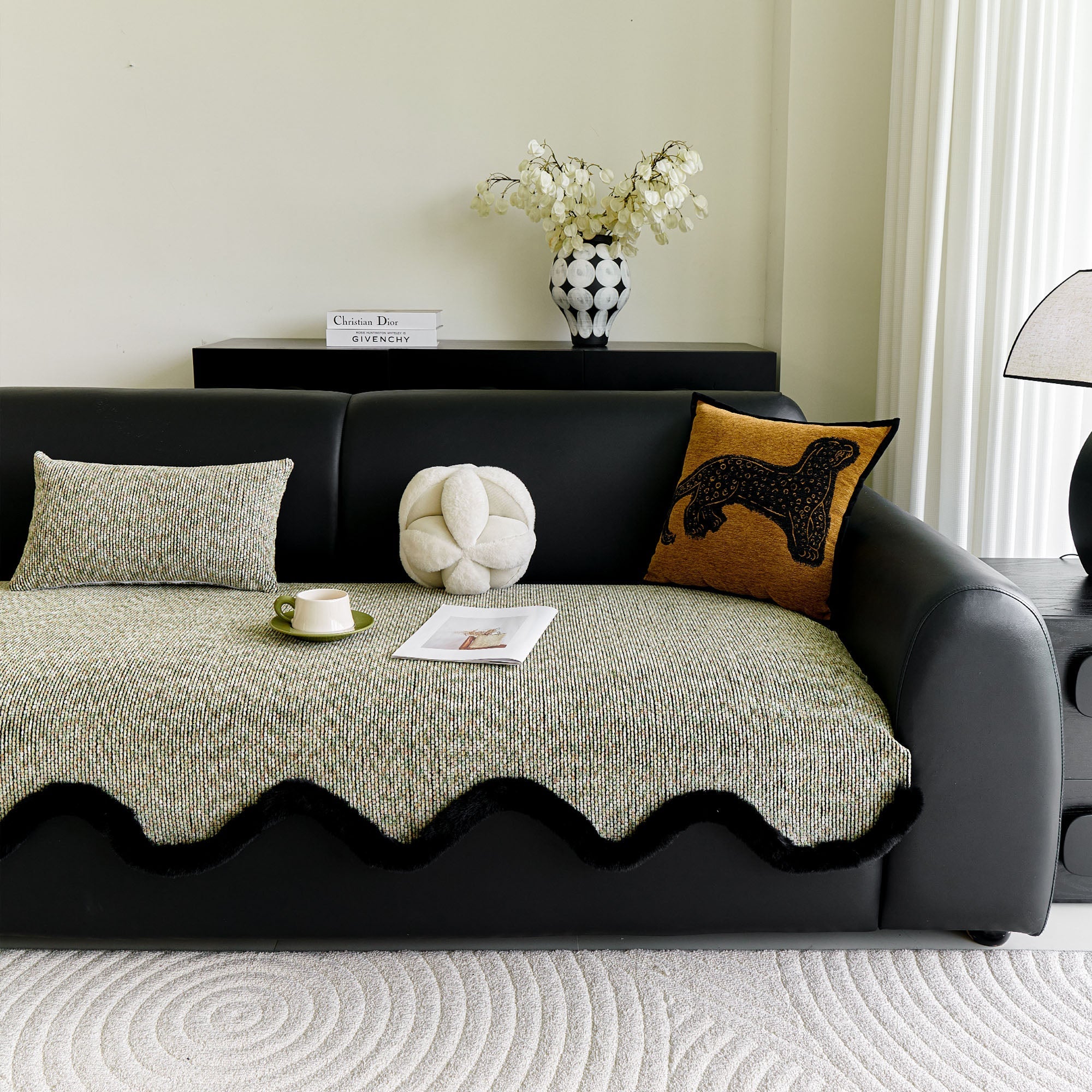 Bring a chic mid-century vibe to your living room with our Mid-Century Wave Chenille Nonslip Sofa/Couch Cover. The tactile, pebble-woven chenille pairs with an eye-catching wavy plush trim for a designer look that elevates leather or fabric sofas in any season. Crafted for everyday living, it cushions, protects, and stays put—so your seating always looks polished.