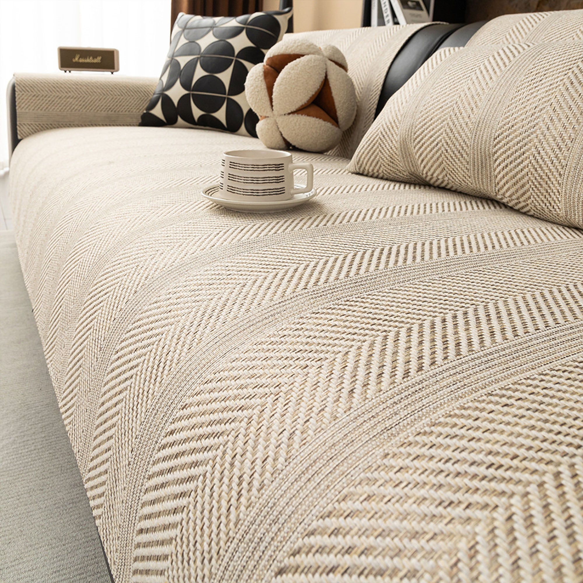 Modern Herringbone Faux-Linen Nonslip Sofa/Couch Cover