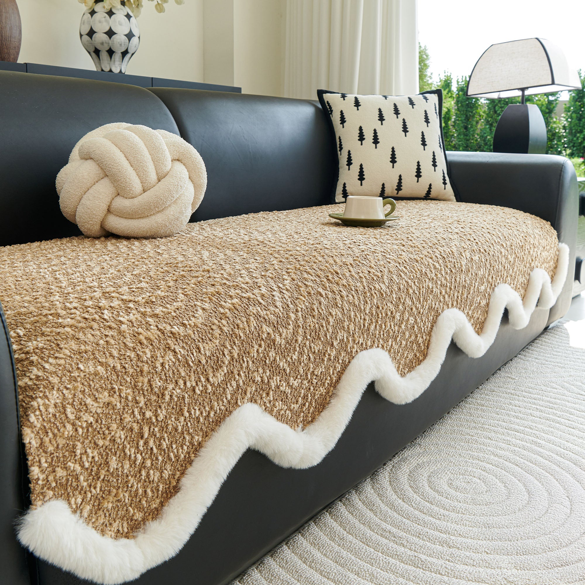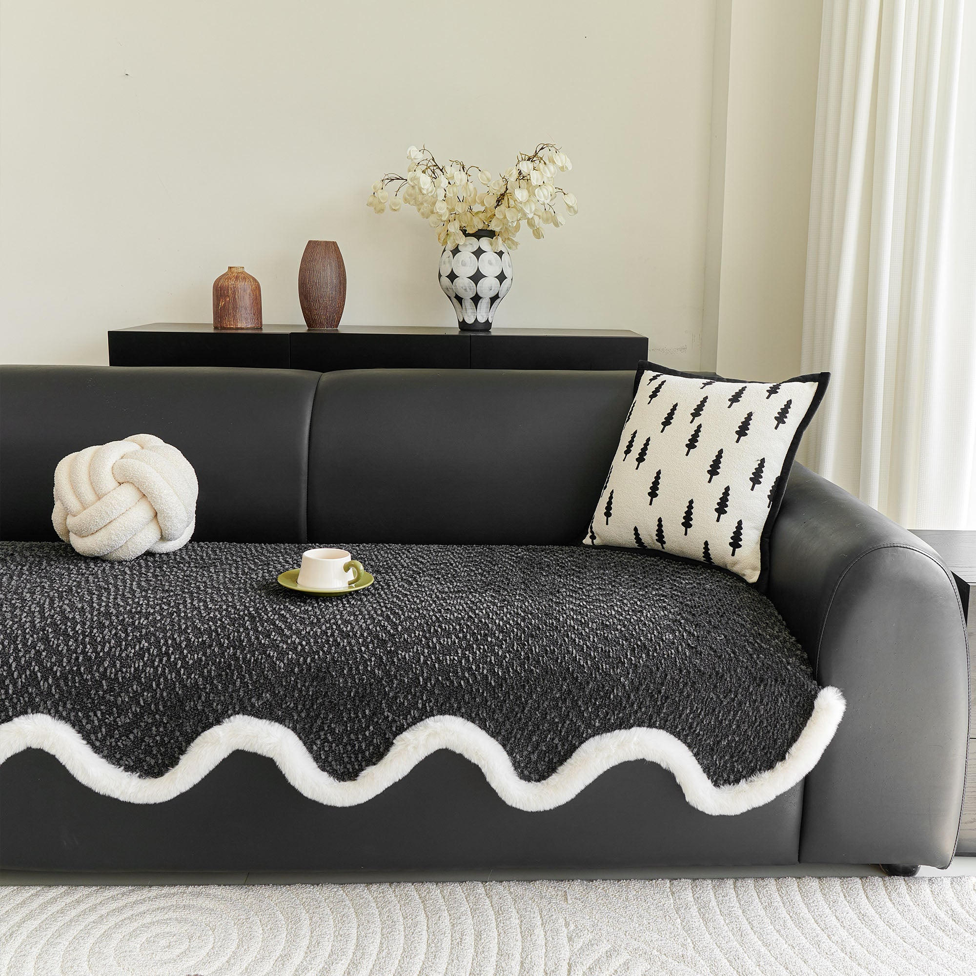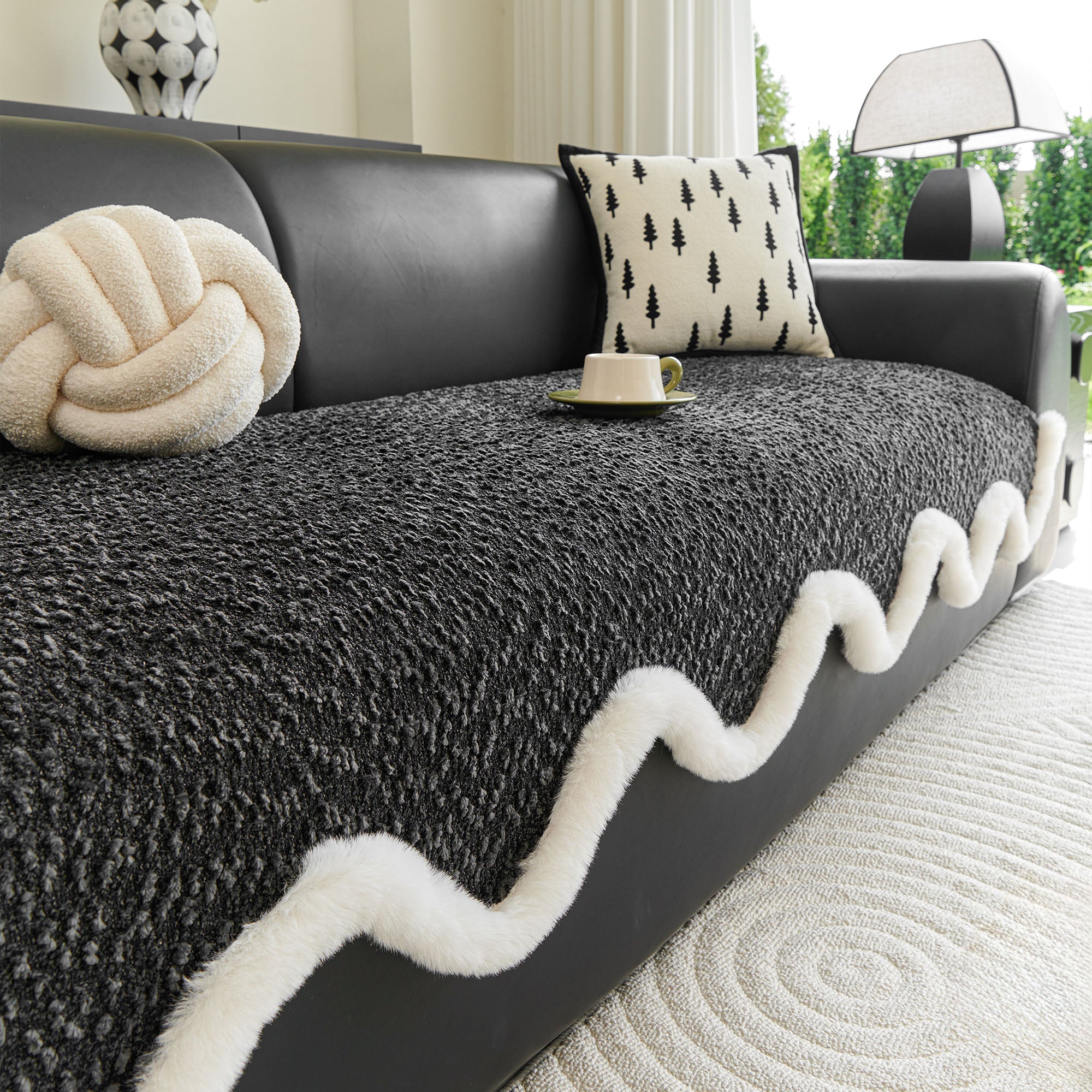 Refresh your seating with our Wavy Plush-Edge Chenille Nonslip Sofa/Couch Cover. The sculpted, wavelike silhouette trimmed in soft faux-fur adds instant luxury, while the dense chenille weave delivers year-round comfort and everyday durability. Designed to stay put on leather or fabric sofas, it guards against spills, crumbs, pet fur, and daily wear—perfect for a high-style, low-maintenance home.