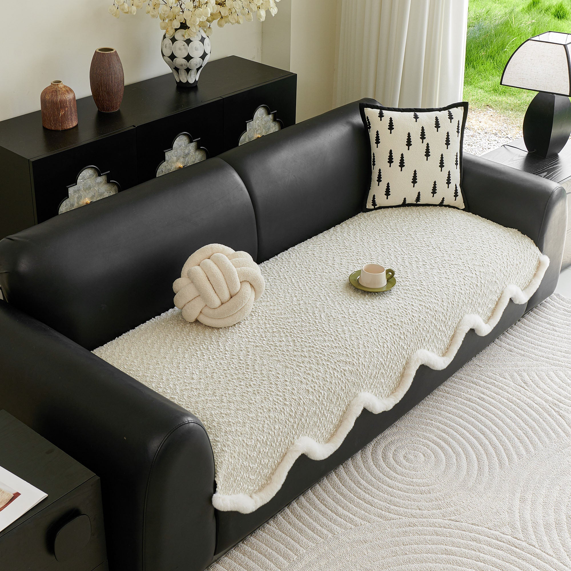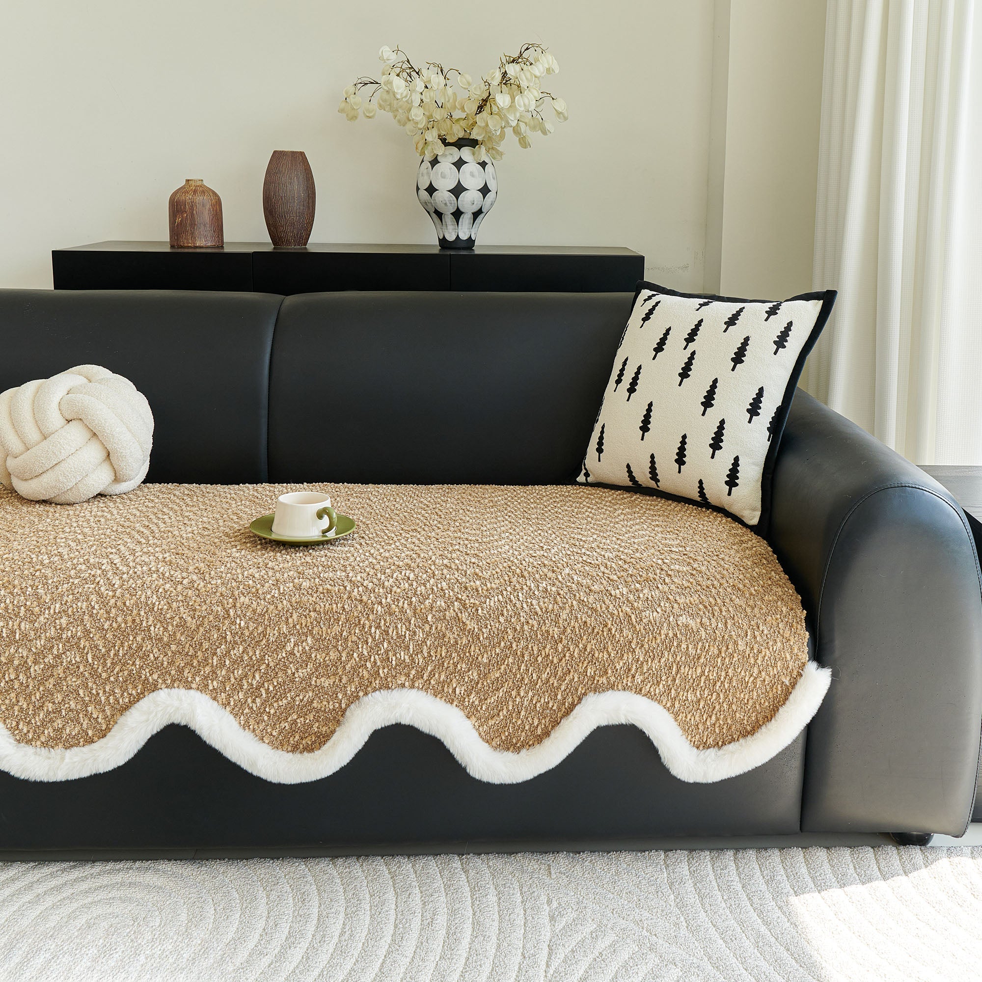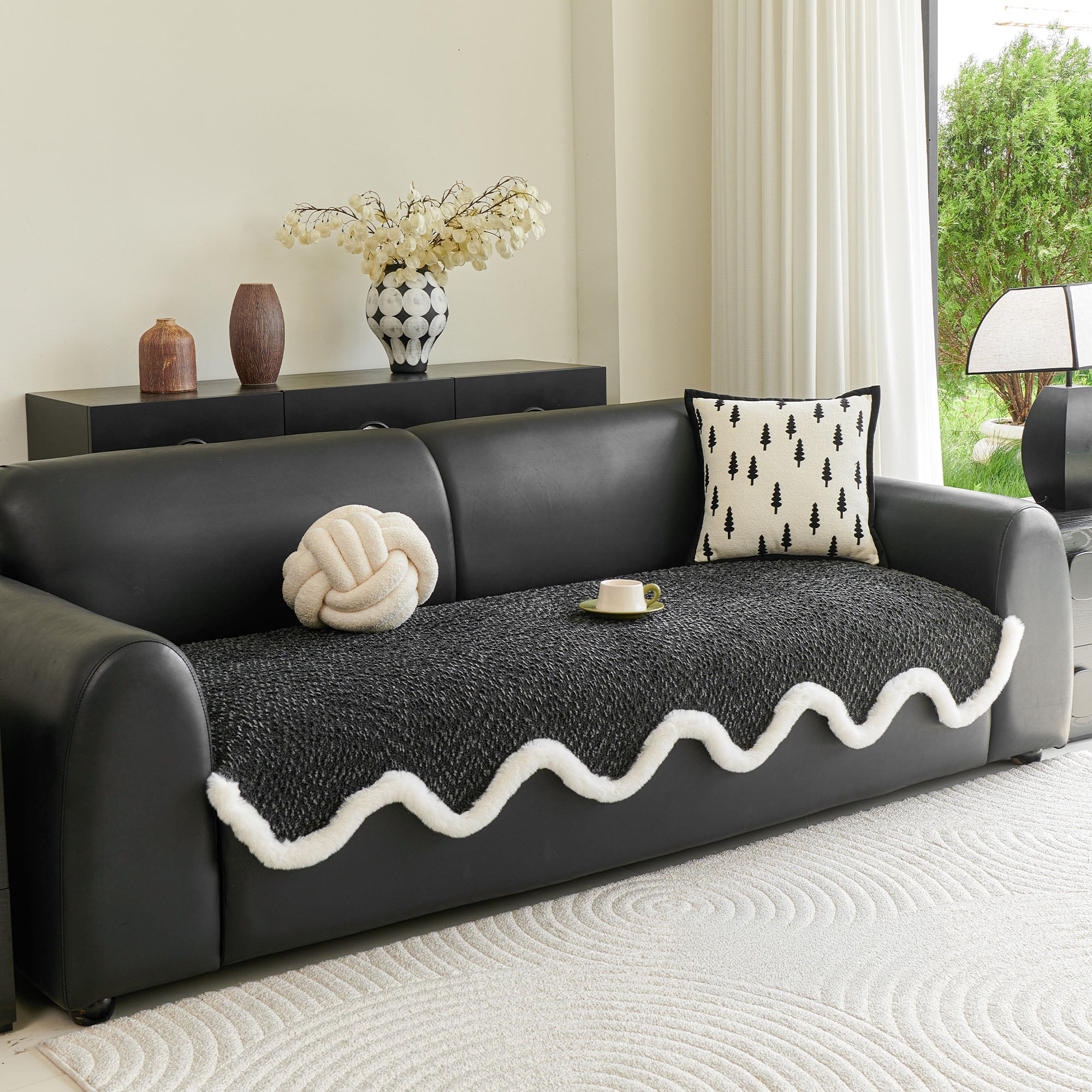 Refresh your seating with our Wavy Plush-Edge Chenille Nonslip Sofa/Couch Cover. The sculpted, wavelike silhouette trimmed in soft faux-fur adds instant luxury, while the dense chenille weave delivers year-round comfort and everyday durability. Designed to stay put on leather or fabric sofas, it guards against spills, crumbs, pet fur, and daily wear—perfect for a high-style, low-maintenance home.