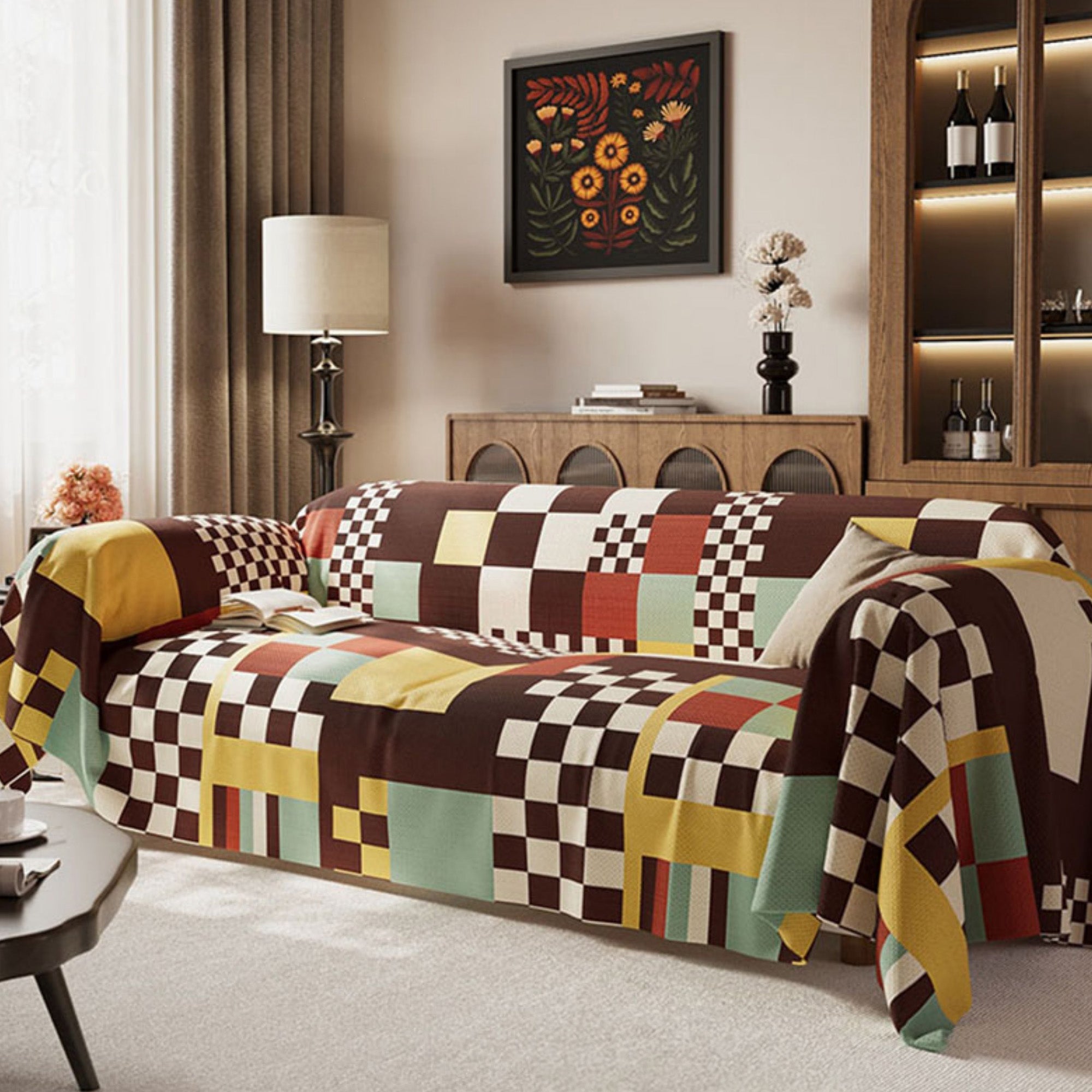 Retro Bold Patch Checkered Pattern Breathable Sofa Cover Soft Easy-to-Clean Couch Protection for a Home Upgrade